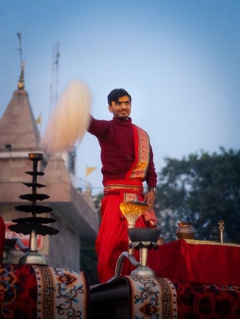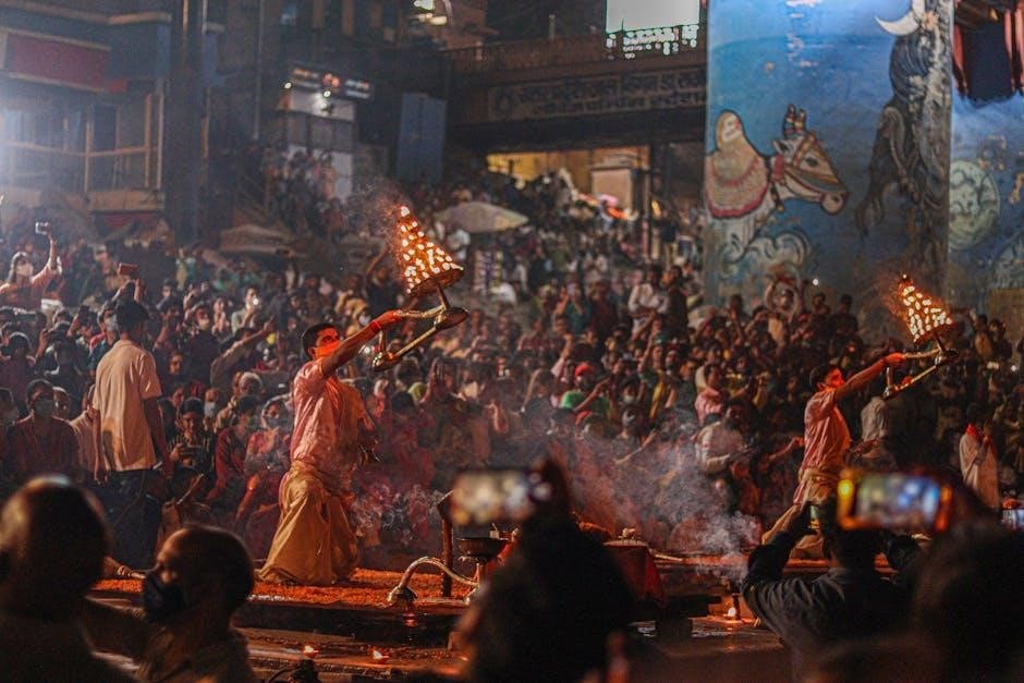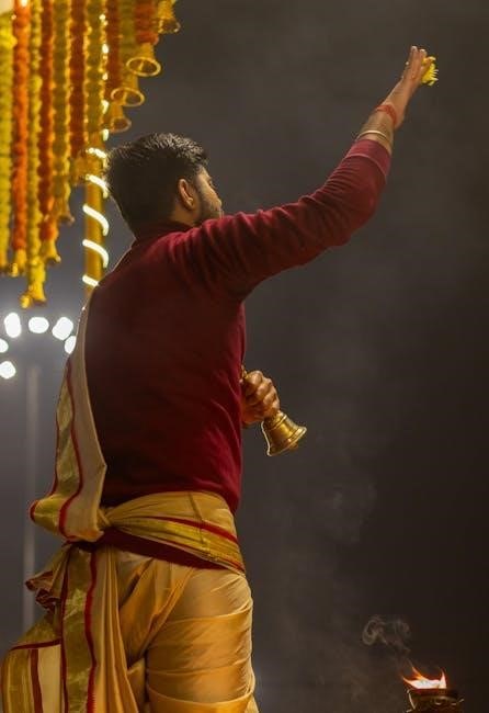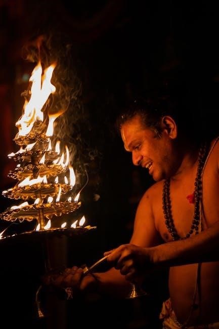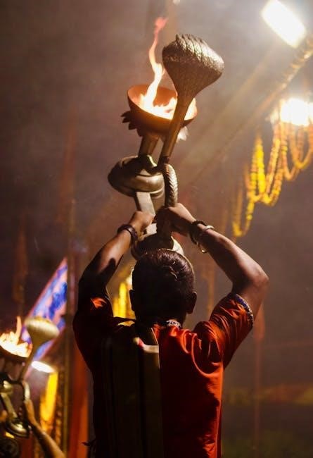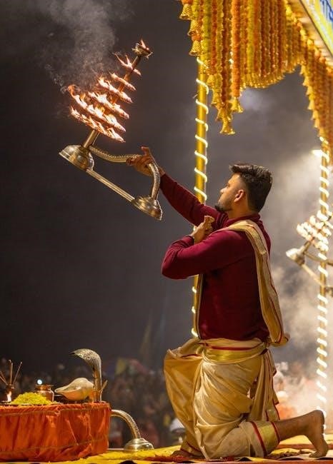 Many downloadable guides explain how the aarti serves to invoke divine blessings and purify the atmosphere. They highlight its significance in establishing a connection between the devotee and the divine. PDFs often suggest reciting the aarti with sincerity and devotion for maximum spiritual benefit, reinforcing its central position in devotional practice.